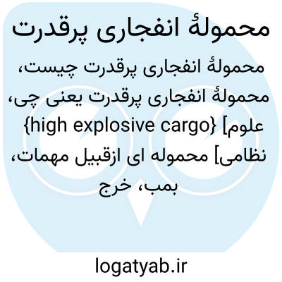 {high explosive cargo} [علوم نظامی] محموله ای ازقبیل مهمات، بمب، خرج انـفـجـاری (depth charges )، مـواد تــخـریـبـی (demolition material )، راکت و موشک