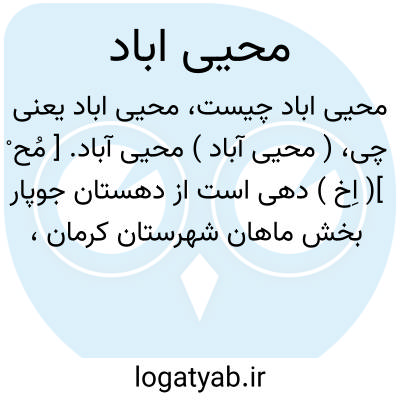 ( محیی آباد ) محیی آباد. [ مُح ْ ]( اِخ ) دهی است از دهستان جوپار بخش ماهان شهرستان کرمان، واقع در 13هزارگزی باختر ماهان، سر راه فرعی ماهان به جوپار با 1100 تن سکنه. آب آن از قنات حکیم آباد تأمین میشود. ( از فرهنگ جغرافیایی ایران ج 8 ).