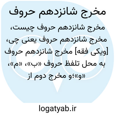 [ویکی فقه] مخرج شانزدهم حروف به محل تلفظ حروف «ب»، «م»، «و»؛و مخرج دوم از موضع شفتان اطلاق می شود.