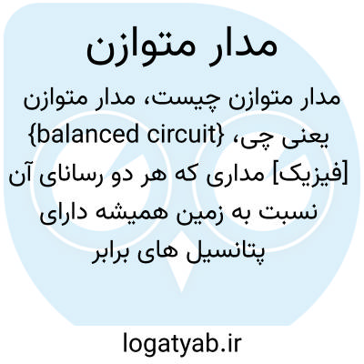 {balanced circuit} [فیزیک] مداری که هر دو رسانای آن نسبت به زمین همیشه دارای پتانسیل های برابر اما مخالف هم اند