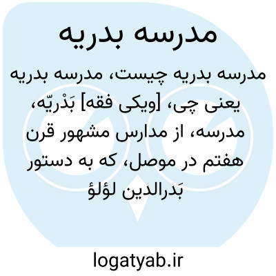[ویکی فقه] بَدْریّه، مدرسه، از مدارس مشهور قرن هفتم در موصل، که به دستور بَدرالدین لؤلؤ (حک: ۶۳۱ـ۶۵۷) تأسیس شد، مدرسه در شمال شهر و کنار دجله قرار داشت.