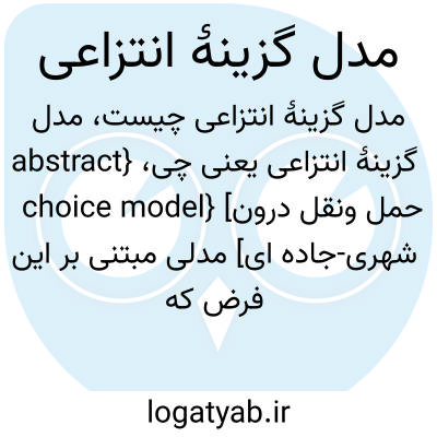 {abstract choice model} [حمل ونقل درون شهری-جاده ای] مدلی مبتنی بر این فرض که شناسایی متغیرهای ناظر بر گزینۀ سفر، یعنی طرز سفر و مقصد و زمان سفر و ویژگی هایی از این قبیل، لازم نیست، بلکه باید ویژگی هایی مانند متغیرهایی که سطح خدمات را مشخص می کنند شناسایی شوند