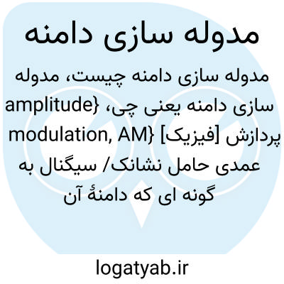 {amplitude modulation, AM} [فیزیک] پردازش عمدی حامل نشانک/ سیگنال به گونه ای که دامنۀ آن مطابق تغییرات نشانک/ سیگنال مدوله کننده تغییر کند