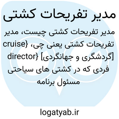 {cruise director} [گردشگری و جهانگردی] فردی که در کشتی های سیاحتی مسئول برنامه های سرگرمی و گشت وگذار در ساحل است