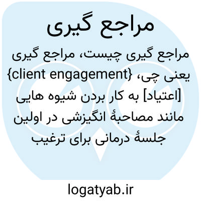 {client engagement} [اعتیاد] به کار بردن شیوه هایی مانند مصاحبۀ انگیزشی در اولین جلسۀ درمانی برای ترغیب مُراجع به ادامۀ درمان