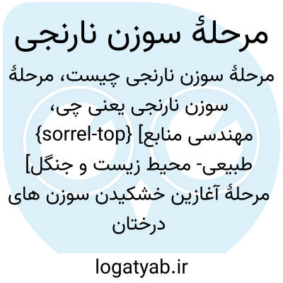 {sorrel-top} [مهندسی منابع طبیعی- محیط زیست و جنگل] مرحلۀ آغازین خشکیدن سوزن های درختان سوزنی برگ براثر حملۀ آفات که در آن سوزن ها به رنگ نارنجی چرک درمی آید متـ. سوزن نارنجی