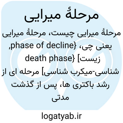{phase of decline, death phase} [زیست شناسی-میکرب شناسی] مرحله ای از رشد باکتری ها، پس از گذشت مدتی در مرحلۀ ایستایی، که در آن تعداد باکتری ها به شدت کاهش می یابد تا به حالت پایا برسد