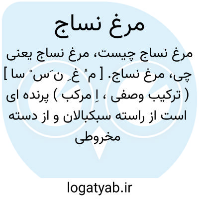 مرغ نساج. [ م ُ غ ِ ن َس ْ سا ] ( ترکیب وصفی، اِ مرکب ) پرنده ای است از راسته سبکبالان و از دسته مخروطی نوکان برنگهای زرد و خاکستری و سیاه باندازه گنجشکی و خاص بمناطق گرم افریقا و آسیاست و لانه خود را با مهارت بشکل کوزه یا کیسه می بافد.