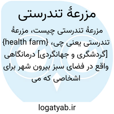 {health farm} [گردشگری و جهانگردی] درمانگاهی واقع در فضای سبز بیرون شهر برای اشخاصی که می خواهند با فعالیت بدنی و رژیم های غذایی مناسب به سلامتی و ظاهری خوب دست یابند