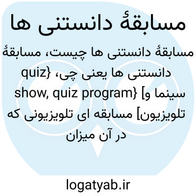 {quiz show, quiz program} [سینما و تلویزیون] مسابقه ای تلویزیونی که در آن میزان اطلاعات عمومی یا تخصصی شرکت کنندگان با طرح پرسش هایی سنجیده می شود