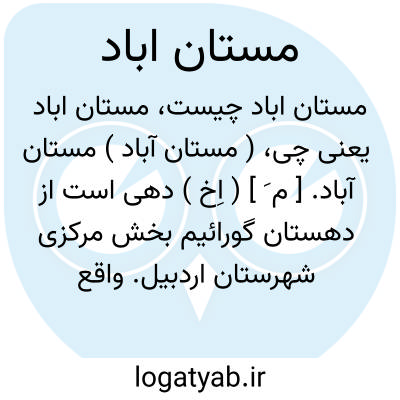 ( مستان آباد ) مستان آباد. [ م َ ] ( اِخ ) دهی است از دهستان گورائیم بخش مرکزی شهرستان اردبیل. واقع در 24هزارگزی جنوب باختری اردبیل و 20هزارگزی راه شوسه اردبیل به تبریز. 580 تن سکنه دارد. آب آن از چشمه و راه آن مالرو است. ( از فرهنگ جغرافیایی ایران ج 4 ).