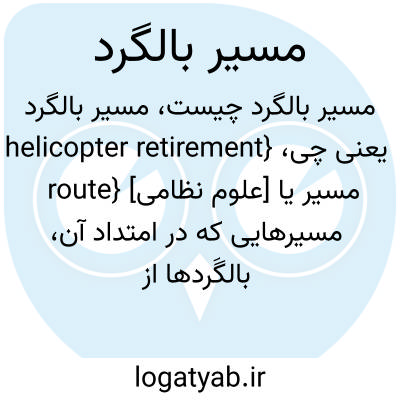 {helicopter retirement route} [علوم نظامی] مسیر یا مسیرهایی که در امتداد آن، بالگَردها از یک منطقۀ فرودِ خاص پرواز می کنند