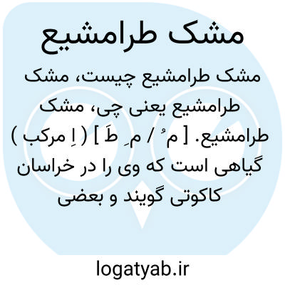 مشک طرامشیع. [ م ُ / م ِ طَ ] ( اِ مرکب ) گیاهی است که وی را در خراسان کاکوتی گویند و بعضی فودنج گویند. حار یابس فی الثلاثه. ( بحر الجواهر ). مشک طرامشیر. رجوع به همین کلمه شود.