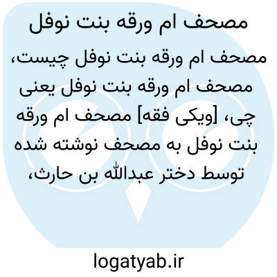 [ویکی فقه] مصحف ام ورقه بنت نوفل به مصحف نوشته شده توسط دختر عبدالله بن حارث، صحابی پیامبر صلی الله علیه و آله وسلّم اطلاق می شود.