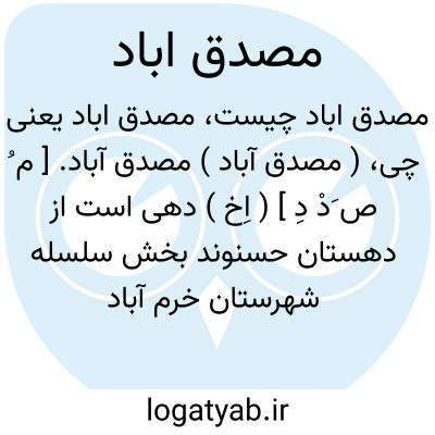 ( مصدق آباد ) مصدق آباد. [ م ُ ص َدْ دِ ] ( اِخ ) دهی است از دهستان حسنوند بخش سلسله شهرستان خرم آباد واقع در16هزارگزی باختری الشتر با 130 تن سکنه. آب آن از رود کهمان و راه آن مالرو است. ساکنان این ده از طایفه یوسف وند هستند. ( از فرهنگ جغرافیائی ایران ج 6 ).