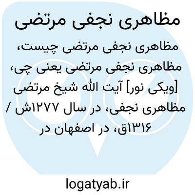 [ویکی نور] آیت الله شیخ مرتضی مظاهری نجفی، در سال 1277ش / 1316ق، در اصفهان در خاندان علم و تقوا به دنیا آمد.