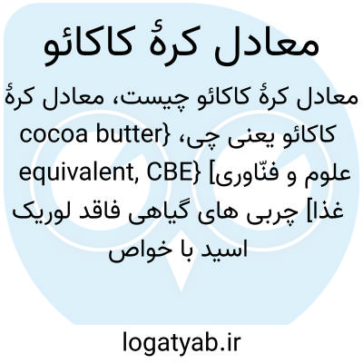 {cocoa butter equivalent, CBE} [علوم و فنّاوری غذا] چربی های گیاهی فاقد لوریک اسید با خواص فیزیکی و شیمیایی مشابه کرۀ کاکائو و قابل اختلاط به هر میزان، بدون ایجاد تغییر در خواصی که آن را شبیه کرۀ کاکائو می کند