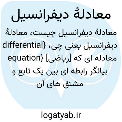{differential equation} [ریاضی] معادله ای که بیانگر رابطه ای بین یک تابع و مشتق های آن است