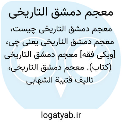 [ویکی فقه] معجم دمشق التاریخی (کتاب). معجم دمشق التاریخی، تالیف قتیبة الشهابی به زبان عربی است. این اثر در سه مجلد به ذکر اماکن، ابنیه و آثار مختلف تاریخی دمشق پرداخته است.