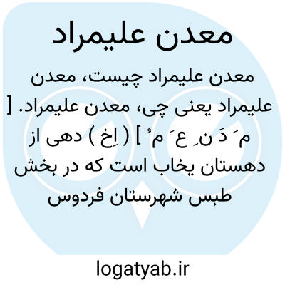 معدن علیمراد. [ م َ دَ ن ِ ع َ م ُ ] ( اِخ ) دهی از دهستان یخاب است که در بخش طبس شهرستان فردوس واقع است و 118 تن سکنه دارد. ( از فرهنگ جغرافیایی ایران ج 9 ).