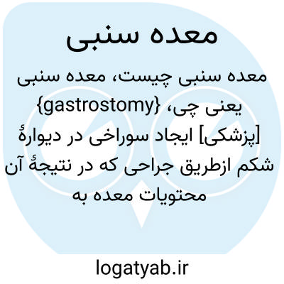 {gastrostomy} [پزشکی] ایجاد سوراخی در دیوارۀ شکم ازطریق جراحی که در نتیجۀ آن محتویات معده به بیرون راه پیدا می کند