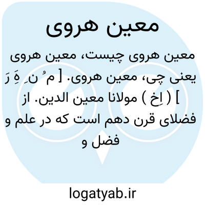 معین هروی. [ م ُ ن ِ هَِ رَ ] ( اِخ ) مولانا معین الدین. از فضلای قرن دهم است که در علم و فضل و تقوی از مشاهیر عصر خود بود. او راست: «معارج النبوة» و «روضة الجنة» در تاریخ هرات و«تاریخ موسوی » و «روضة الواعظین ». از اشعار اوست: