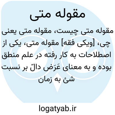 [ویکی فقه] مقوله متی، یکی از اصطلاحات به کار رفته در علم منطق بوده و به معنای عَرَض دالّ بر نسبت شئ به زمان یا طرف زمان است.