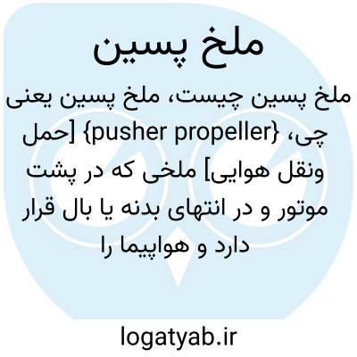{pusher propeller} [حمل ونقل هوایی] ملخی که در پشت موتور و در انتهای بدنه یا بال قرار دارد و هواپیما را با فشار به پیش می راند