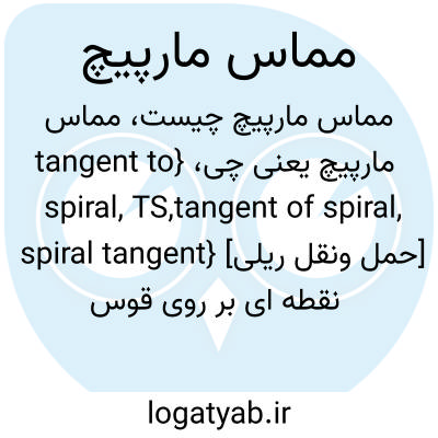 {tangent to spiral, TS,tangent of spiral, spiral tangent} [حمل ونقل ریلی] نقطه ای بر روی قوس که در آن مماس پایان می یابد و منحنی مارپیچ آغاز می شود