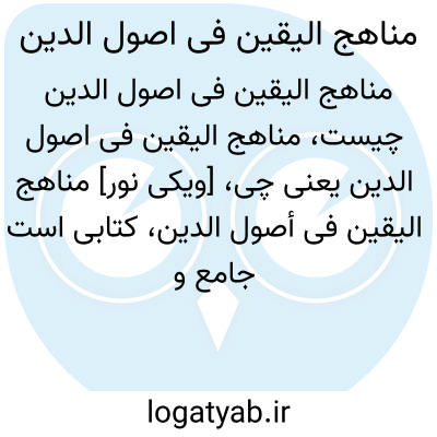 [ویکی شیعه] مناهج الیقین فی اصول الدین (کتاب). مَناهِجُ الیَقین فی اُصولِ الدّین کتابی عربی در فن کلام و معارف اسلامی تألیف علامه حلی. این کتاب، شرح مبانی اصول عقاید شیعه امامیه و ادله عقلی و نقلی مبتنی بر آن است. در این اثر ابتدا به بحث درباره اقسام معلومات و احکام کلی وجود و عدم پرداخته شده، سپس اقسام موجودات، اعم از قدیم و حادث، اقسام موجودات حادث و احکام و مقدمات آنها مورد بحث و بررسی قرار گرفته است.