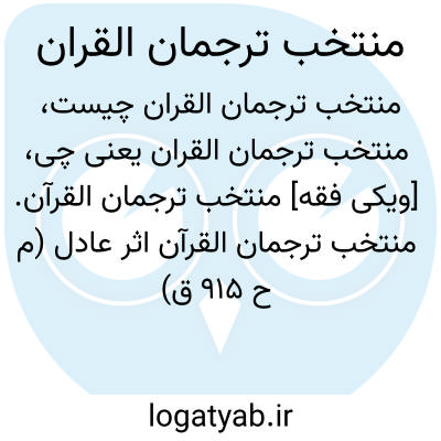 [ویکی فقه] منتخب ترجمان القرآن. منتخب ترجمان القرآن اثر عادل (م ح ۹۱۵ ق) فرزند علی بن عادل حافظ خراسانی، از علمای شیعه ادیب و شاعر می باشد.