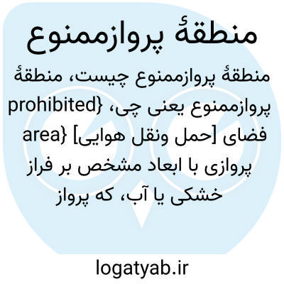 {prohibited area} [حمل ونقل هوایی] فضای پروازی با ابعاد مشخص بر فراز خشکی یا آب، که پرواز در آن معمولاً به دلایل امنیت ملی یا محافظت از حیات وحش ممنوع و مستلزم اجازۀ مقامات مسئول است