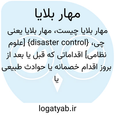 {disaster control} [علوم نظامی] اقداماتی که قبل یا بعد از بروز اقدام خصمانه یا حوادث طبیعی یا خرابکارانه یا در هنگام بروز آنها برای کاهش خسارات و صدمات و آثار احتمالی آنها انجام می شود