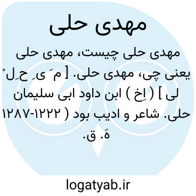 مهدی حلی. [ م َ ی ِ ح ِل ْ لی ] ( اِخ ) ابن داود ابی سلیمان حلی. شاعر و ادیب بود ( 1222-1287 هَ. ق. ). در حله عراق زاده شد و هم در آنجا درگذشت. او راست: مصباح الادب الزاهر و مختارات من شعر شعراءالعرب و دیوان شعر. ( از اعلام زرکلی ج 3 ص 1078 ).