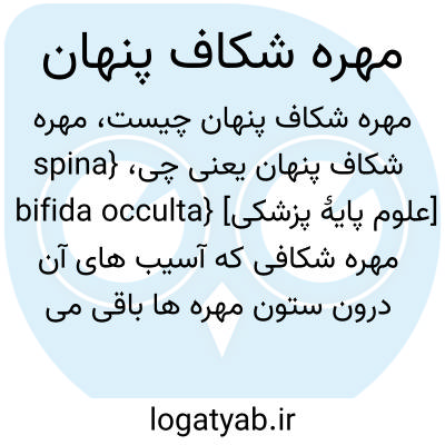 {spina bifida occulta} [علوم پایۀ پزشکی] مهره شکافی که آسیب های آن درون ستون مهره ها باقی می ماند و از روی سطح خارجی بدن قابل تشخیص نیست