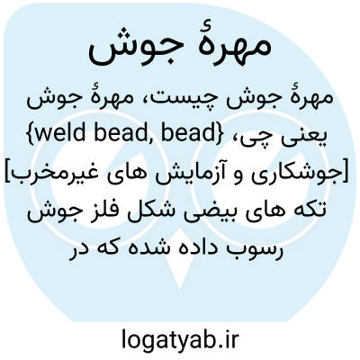 {weld bead, bead} [جوشکاری و آزمایش های غیرمخرب] تکه های بیضی شکل فلز جوش رسوب داده شده که در نتیجۀ همپوشانی موجب اتصال دو قطعه می شوند
