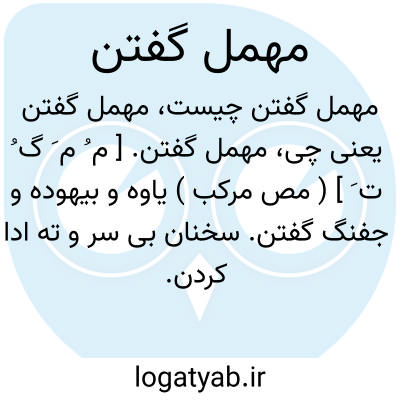 مهمل گفتن. [ م ُ م َ گ ُ ت َ ] ( مص مرکب ) یاوه و بیهوده و جفنگ گفتن. سخنان بی سر و ته ادا کردن.