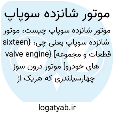 {sixteen valve engine} [قطعات و مجموعه های خودرو] موتور درون سوز چهارسیلندری که هریک از سیلندرهای آن دو سوپاپ هوا و دو سوپاپ دود دارد و درنتیجه، در قیاس با موتور دوسوپاپ، بازده بیشتری دارد