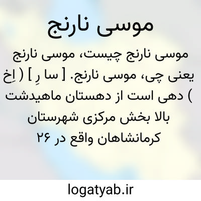 موسی نارنج. [ سا رِ ] ( اِخ ) دهی است از دهستان ماهیدشت بالا بخش مرکزی شهرستان کرمانشاهان واقع در 26 هزارگزی جنوب کرمانشاه با 285 تن جمعیت. آب آن از چشمه و راه آن مالرو است. ( از فرهنگ جغرافیائی ایران ج 5 ).