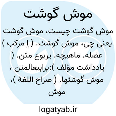 موش گوشت. ( اِ مرکب ) عضله. ماهیچه. یربوع متن. ( یادداشت مؤلف ):یرابیعالمتن، موش گوشتها. ( صراح اللغة )، موش گوشتهای پشت. ( منتهی الارب ). و رجوع به عضله و ماهیچه شود.