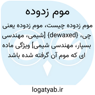 {dewaxed} [شیمی، مهندسی بسپار، مهندسی شیمی] ویژگی ماده ای که موم آن گرفته شده باشد