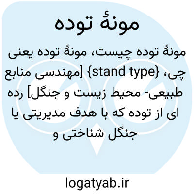 {stand type} [مهندسی منابع طبیعی- محیط زیست و جنگل] رده ای از توده که با هدف مدیریتی یا جنگل شناختی و معمولاً براساس ترکیب و ساختار و سن تعریف می شود