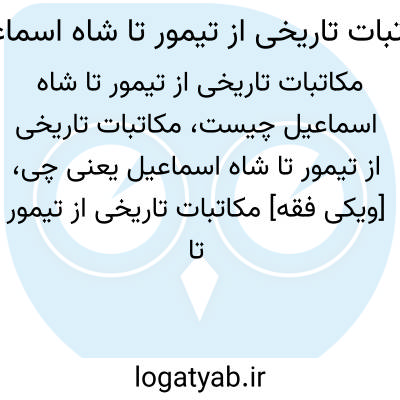 [ویکی فقه] مکاتبات تاریخی از تیمور تا شاه اسماعیل (کتاب). اسناد و مکاتبات تاریخی از تیمور تا شاه اسماعیل، نوشته عبدالحسین نوائی است که به زبان فارسی درباره دولت های ایران نوشته است. در واقع مجموعه ای است، از مکاتبات رسمی و اسناد سیاسی و اجتماعی ایران از هنگامی که نام تیمور گورکانی در اسناد رسمی آمده تا وقتی که نام قزلباش و مؤسس سلسه صفویه شاه اسماعیل در مکاتبات دولتی وارد شده است.