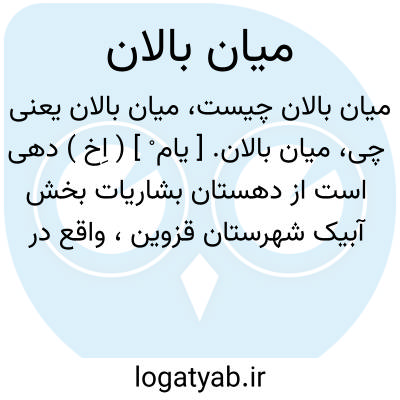 میان بالان. [ یام ْ ] ( اِخ ) دهی است از دهستان بشاریات بخش آبیک شهرستان قزوین، واقع در 9هزارگزی راه عمومی با 251 تن جمعیت. آب آن از قنات و راه آن ماشین رو است. ( از فرهنگ جغرافیائی ایران ج 1 ).