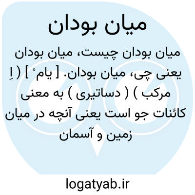 میان بودان. [ یام ْ ] ( اِ مرکب ) ( دساتیری ) به معنی کائنات جو است یعنی آنچه در میان زمین و آسمان متکون گردد مثل ابر و باد و باران. ( آنندراج ) ( انجمن آرا ).