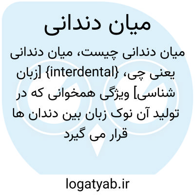 {interdental} [زبان شناسی] ویژگی همخوانی که در تولید آن نوک زبان بین دندان ها قرار می گیرد