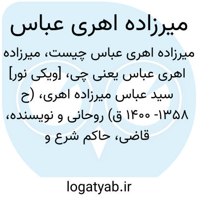 [ویکی نور] سید عباس میرزاده اهرى، (ح 1358- 1400 ق) روحانی و نویسنده، قاضی، حاکم شرع و ریاست دادگاههای انقلاب شهرستانهای «میانه»، «هشتبر»، «آستارا» و «خلخال»