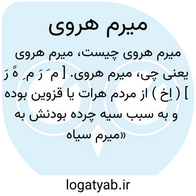 میرم هروی. [ م َ رَ م ِ هََ رَ ] ( اِخ ) از مردم هرات یا قزوین بوده و به سبب سیه چرده بودنش به «میرم سیاه » نیز معروفیت داشته است. وی از شاعران عارف قرن نهم و دهم بوده، اشعار جدی و نیز هزلیات و لطائف در دو دیوان از وی باقی است. وی در پایان عمر به ماوراءالنهر رفته و در آنجا درگذشته است. دو بیت عارفانه زیر از اوست: ای روح قدس را به جناب تو التجا بادا هزار جان مقدس ترا فدا غیر از تو کیست شاه سرا پرده وجود یالن یدا جمالک من کل ما یدا.( از قاموس الاعلام ترکی ).و رجوع به فرهنگ سخنوران ومآخذ مندرج در آن شود.
