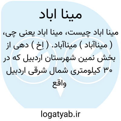 ( میناآباد ) میناآباد. ( اِخ ) دهی از بخش نمین شهرستان اردبیل که در 30 کیلومتری شمال شرقی اردبیل واقع است. کوهستانی و معتدل است. تعداد سکنه اش 953تن است. آبش از رودخانه. محصولش غلات. شغل اهالی زراعت و گله داری است. ( از فرهنگ جغرافیائی ایران ج 4 ).