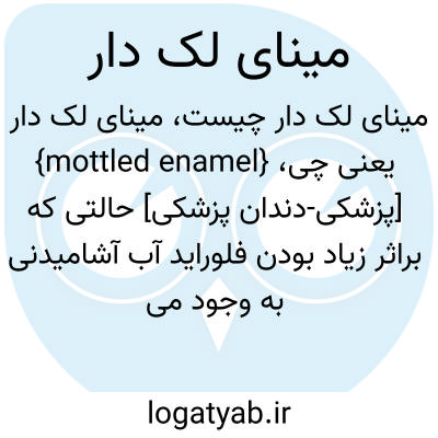 {mottled enamel} [پزشکی-دندان پزشکی] حالتی که براثر زیاد بودن فلوراید آب آشامیدنی به وجود می آید و باعث می شود در سطح مینا لک و پیس های سفید و قهوه ای ظاهر شود